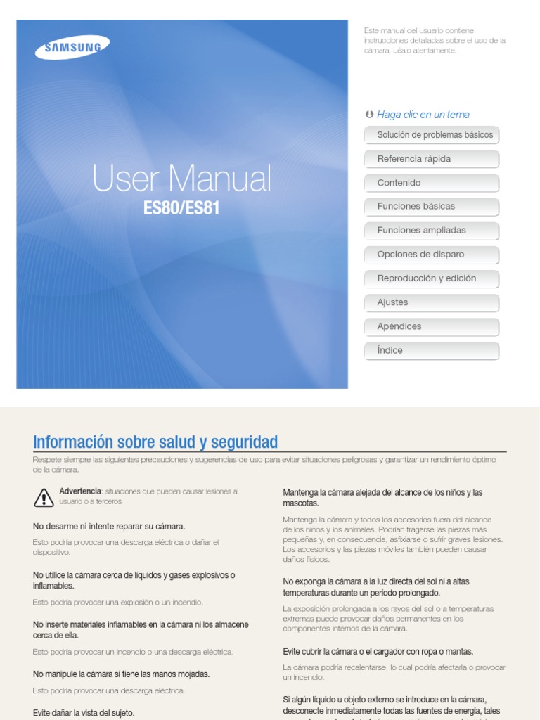 Referencia rpida Contenido Funciones bsicas Funciones ampliadas Opciones de disparo Reproduccin y edicin Ajustes Apndices ndice