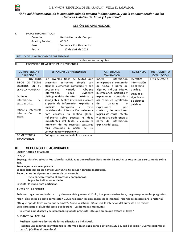 SESIÓN DE APRENDIZAJE