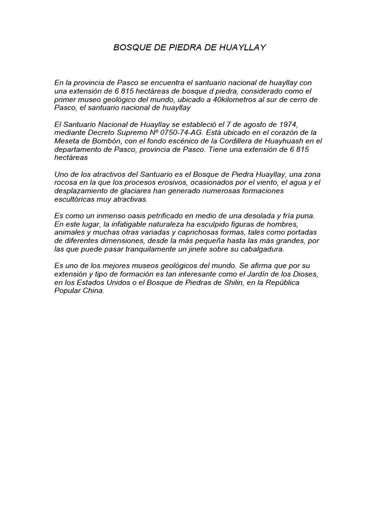 Bosque de Piedra de Huayllay, así como su flora y fauna nativas.