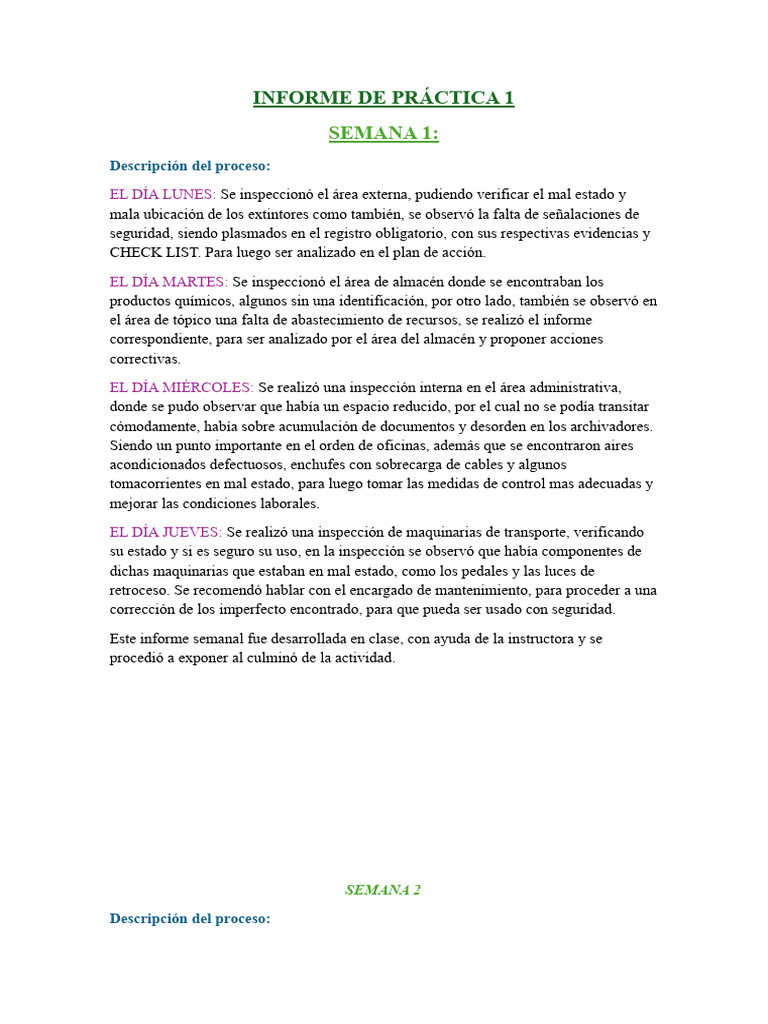 Día Sábado: Se realizo el informe sobre el avance semanal de prácticas.