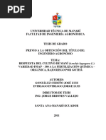 de arado a 45 cm de profundidad y dos pases de experimento no se aplicó fertilizantes químicos