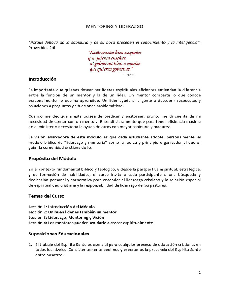 potencial de sus discípulos siendo su mentor diariamente en una variedad de maneras.
