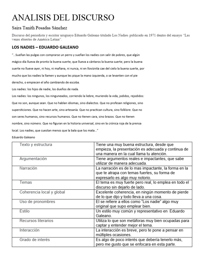 Discurso del periodista y escritor uruguayo Eduardo Galeano titulado Los Nadies publicado en 1971 dentro del ensayo “Las