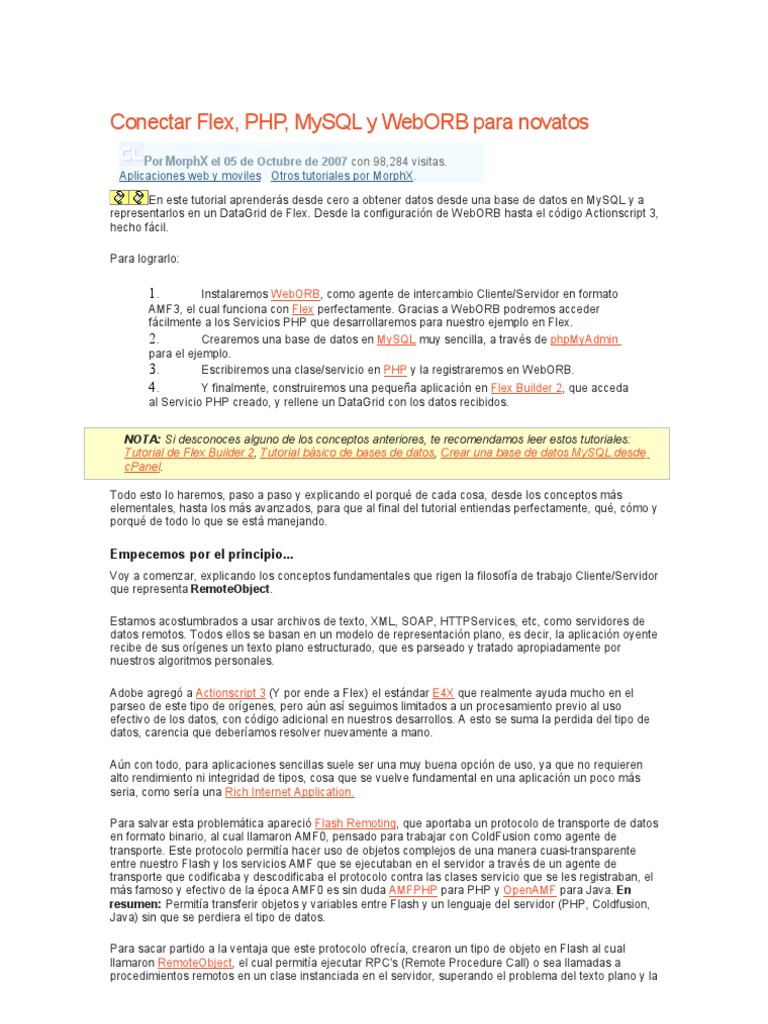 Conectar Flex, PHP, MySQL y WebORB para novatos