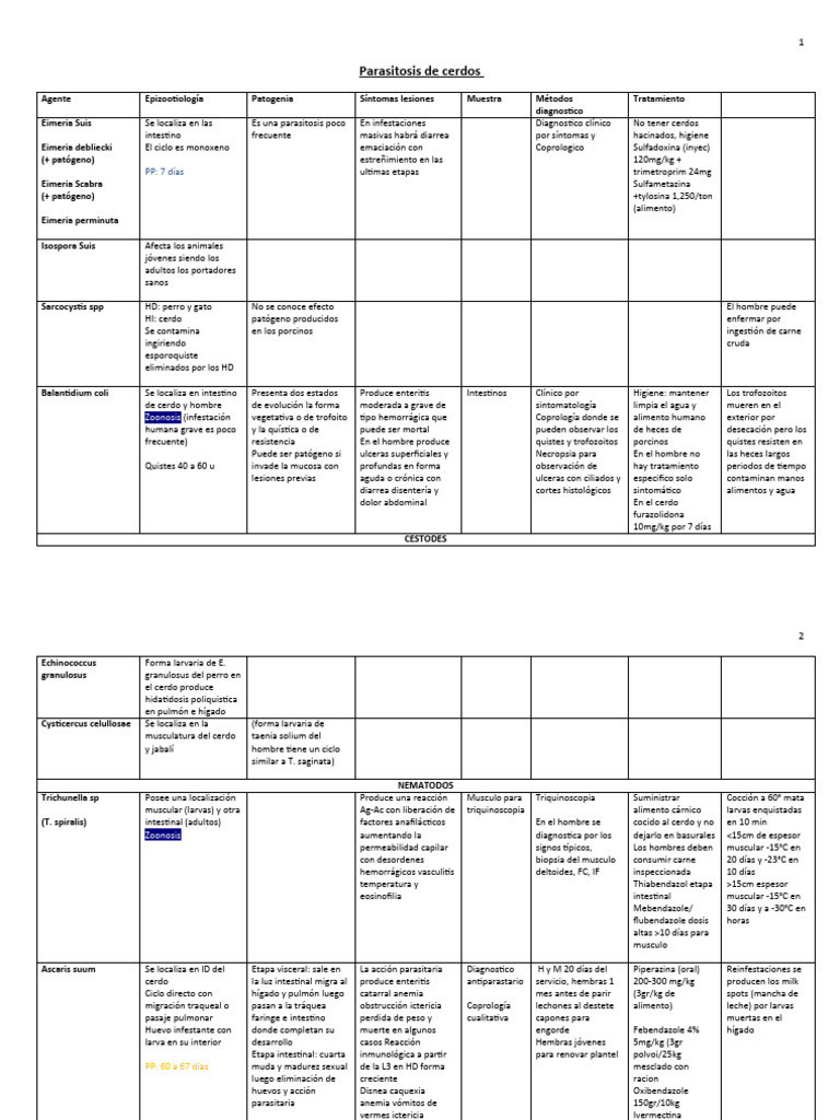 Trichunella sp Posee una localización Produce una reacción Musculo para Triquinoscopia Suministrar Cocción a 60° mata