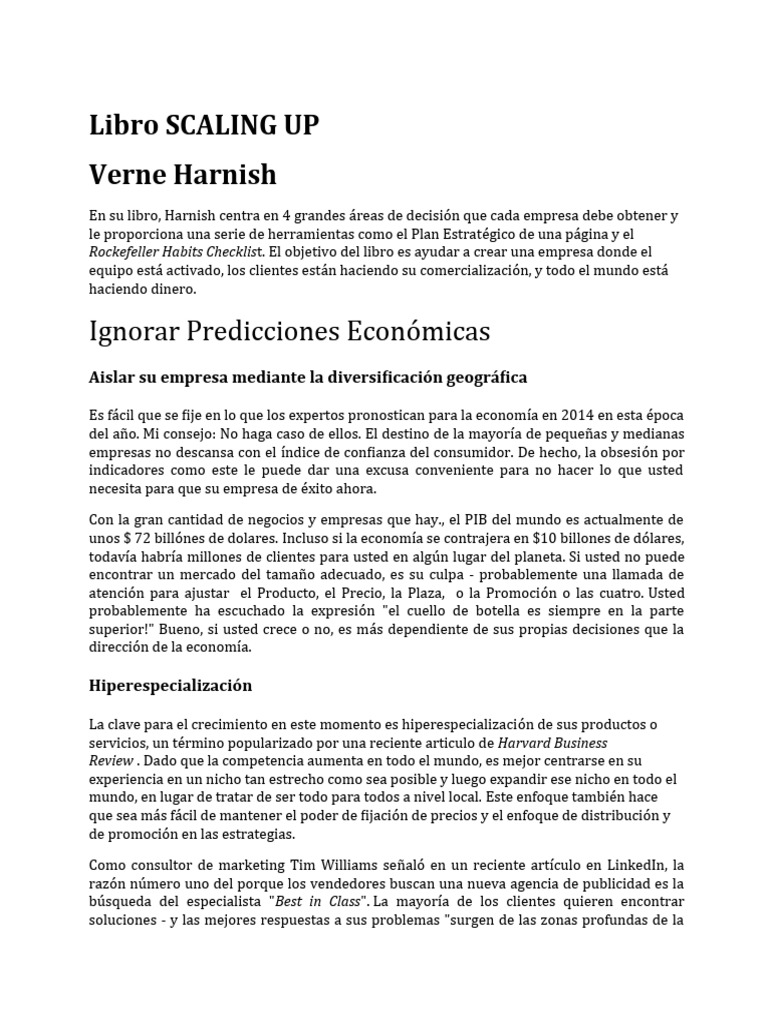 Rockefeller Habits Checklist. El objetivo del libro es ayudar a crear una empresa donde el