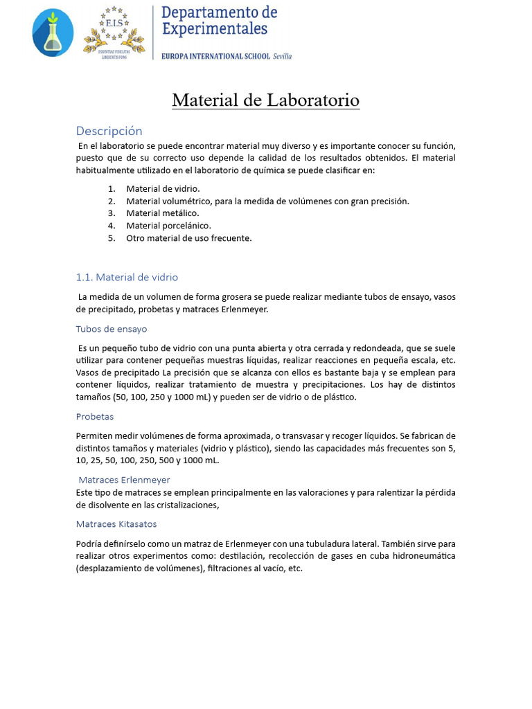 En el laboratorio se puede encontrar material muy diverso y es importante conocer su función,