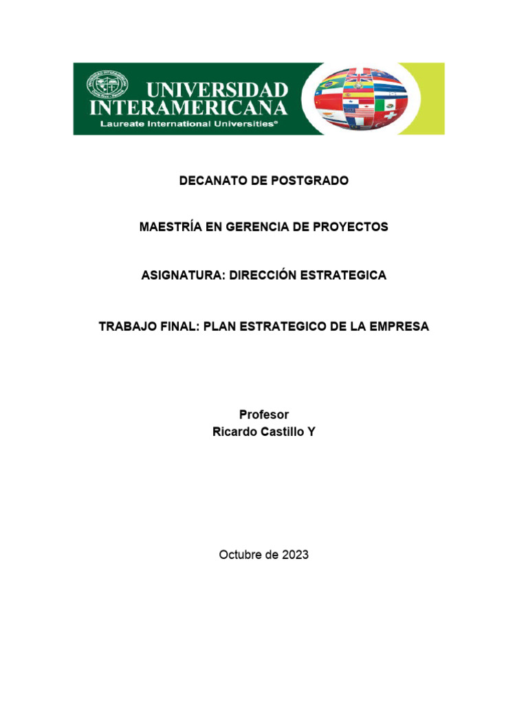 TRABAJO FINAL: PLAN ESTRATEGICO DE LA EMPRESA