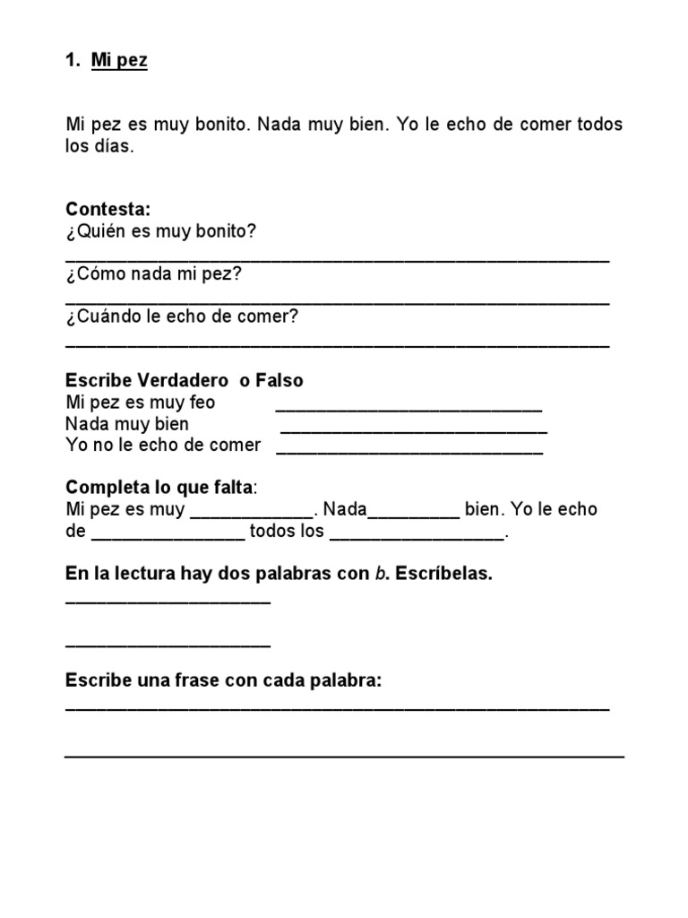Mi pez es muy ____________. Nada_________ bien. Yo le echo