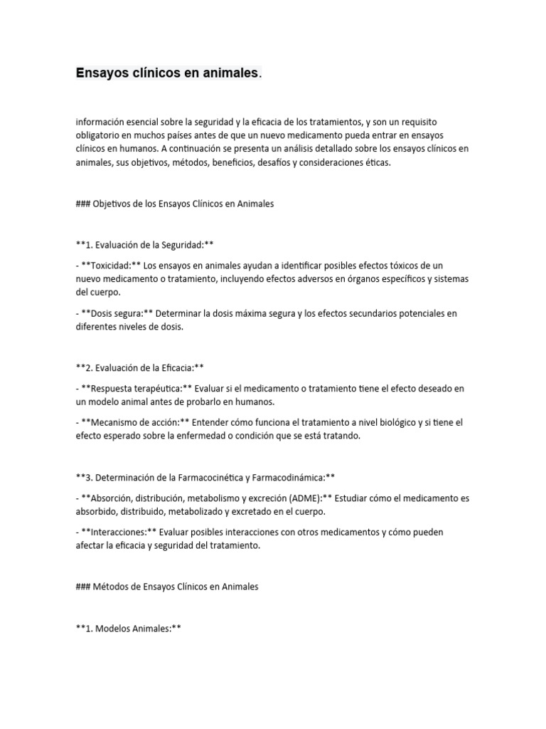 - **Toxicidad:** Los ensayos en animales ayudan a identificar posibles efectos tóxicos de un