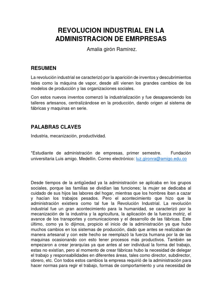 administración existiera como tal fue la Revolución Industrial. La revolución