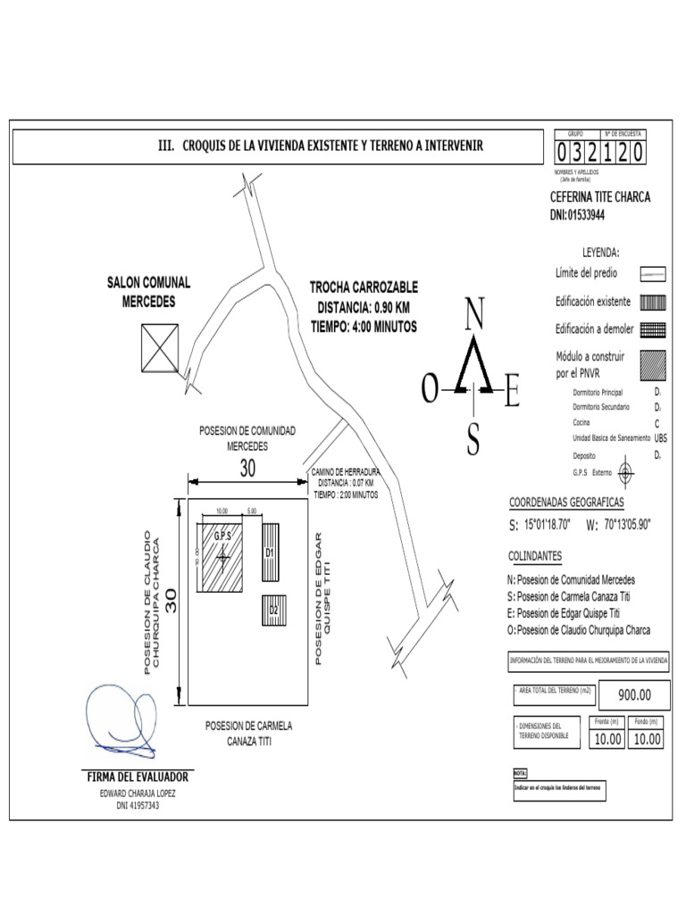 III. CROQUIS DE LA VIVIENDA EXISTENTE Y TERRENO A INTERVENIR