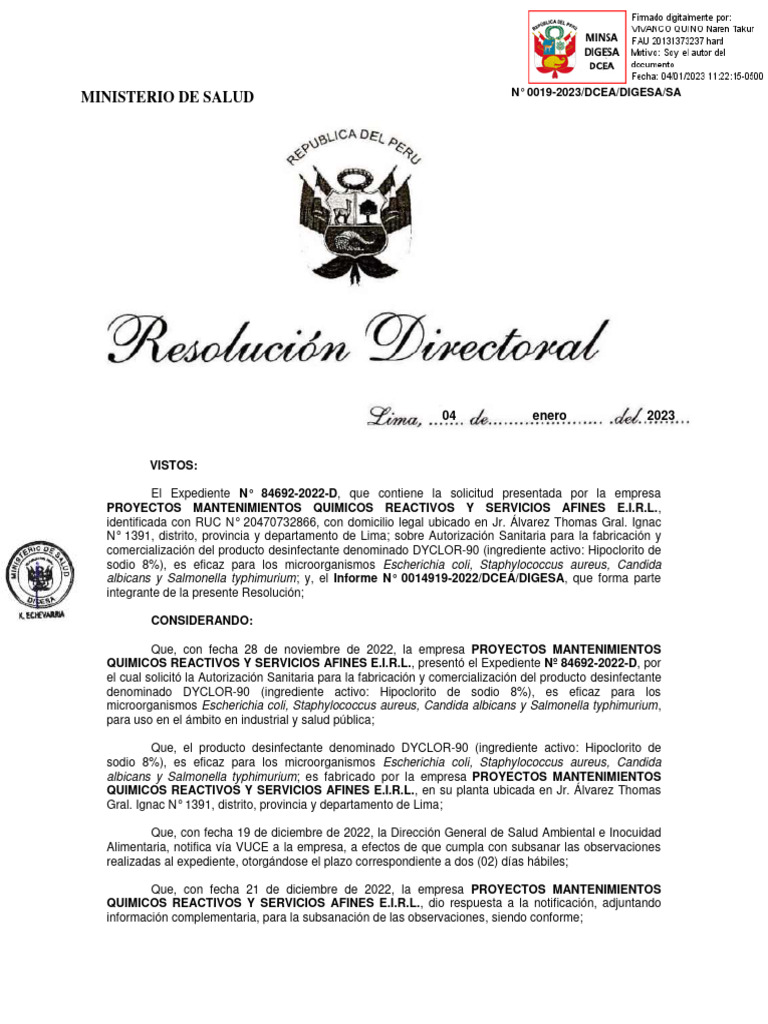 N° 0019-2023/DCEA/DIGESA/SA