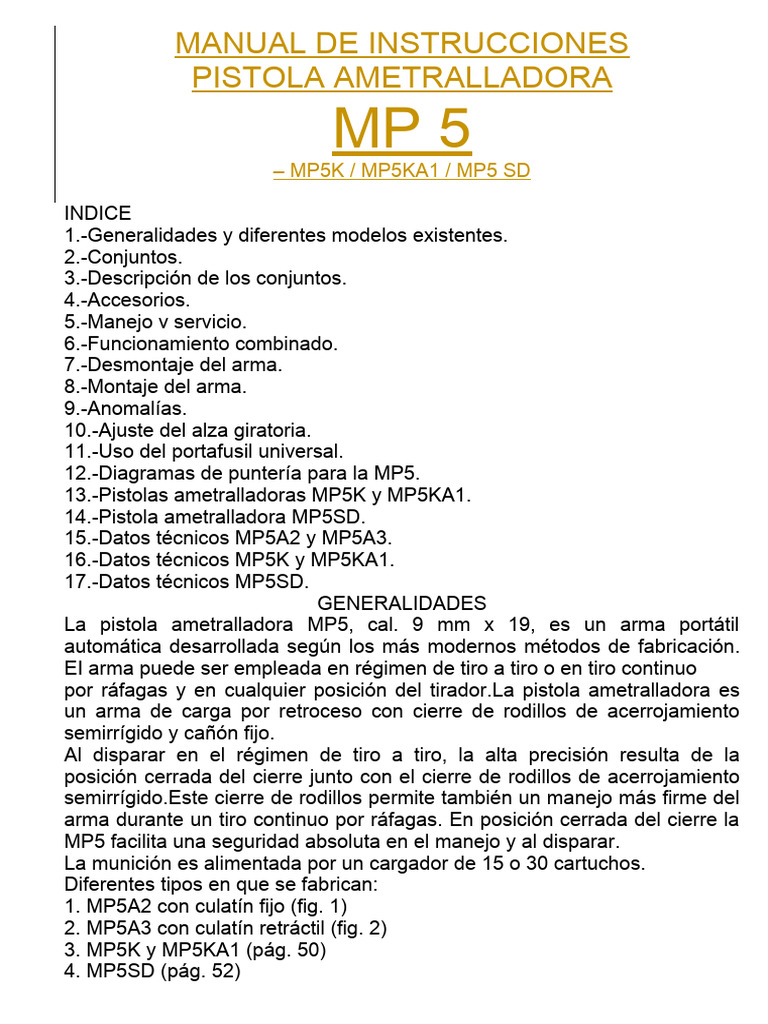 DATOS TECNICOS DE LOS MODELOS MP5K Y MP5KA1