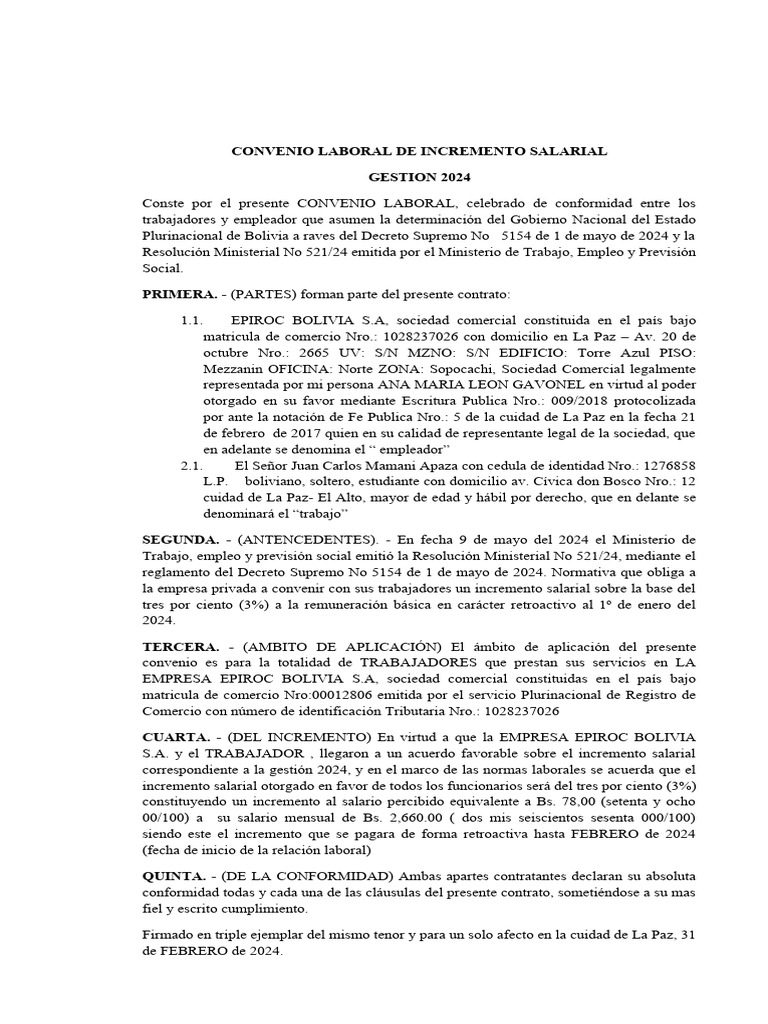 CONVENIO LABORAL DE INCREMENTO SALARIAL
