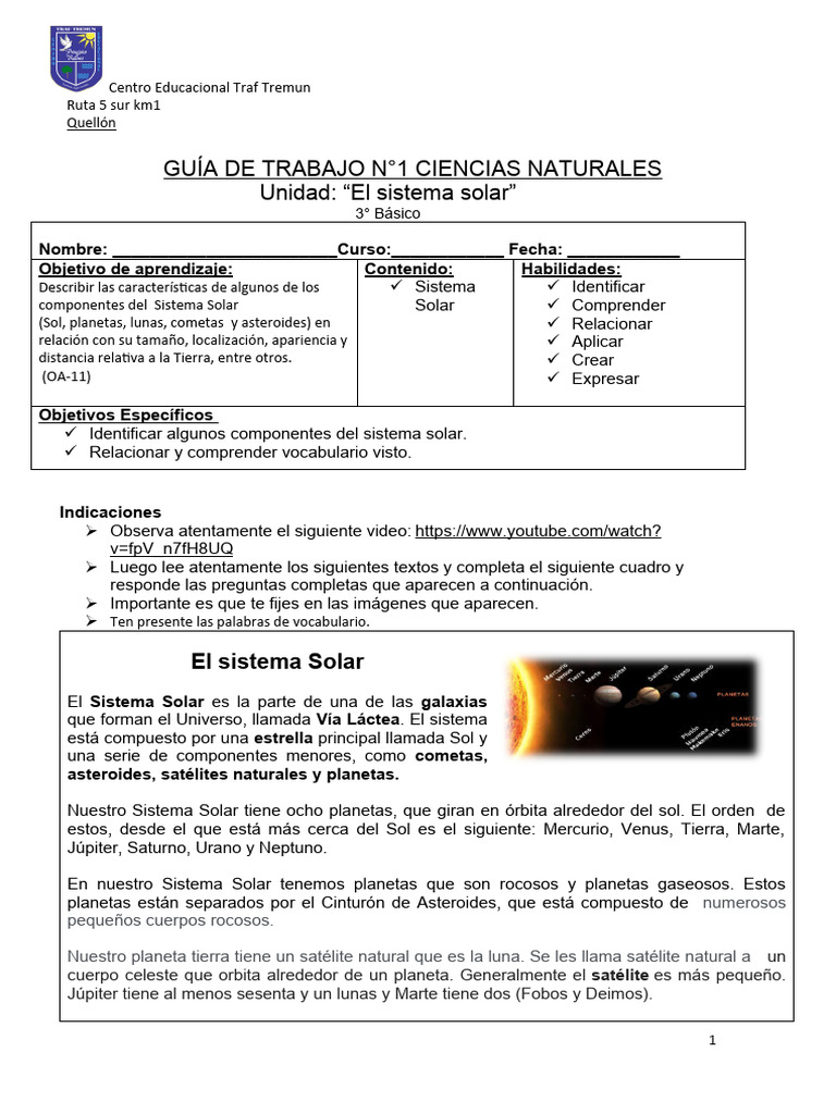 Unidad: “El sistema solar”