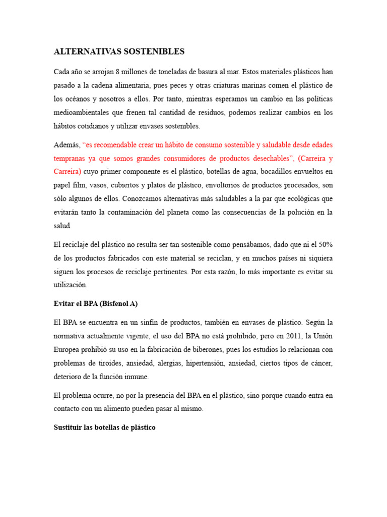 sostenibles. En relación con las alternativas sostenibles para sustituir el plástico, es