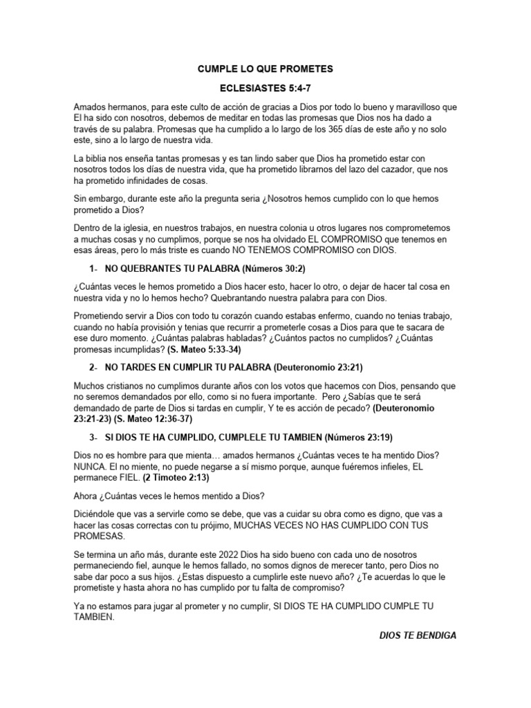 Ya no estamos para jugar al prometer y no cumplir, SI DIOS TE HA CUMPLIDO CUMPLE TU