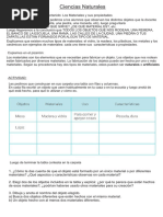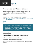 materiales, según sus propiedades. Describen cambios producidos en los materiales al