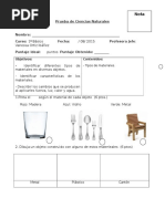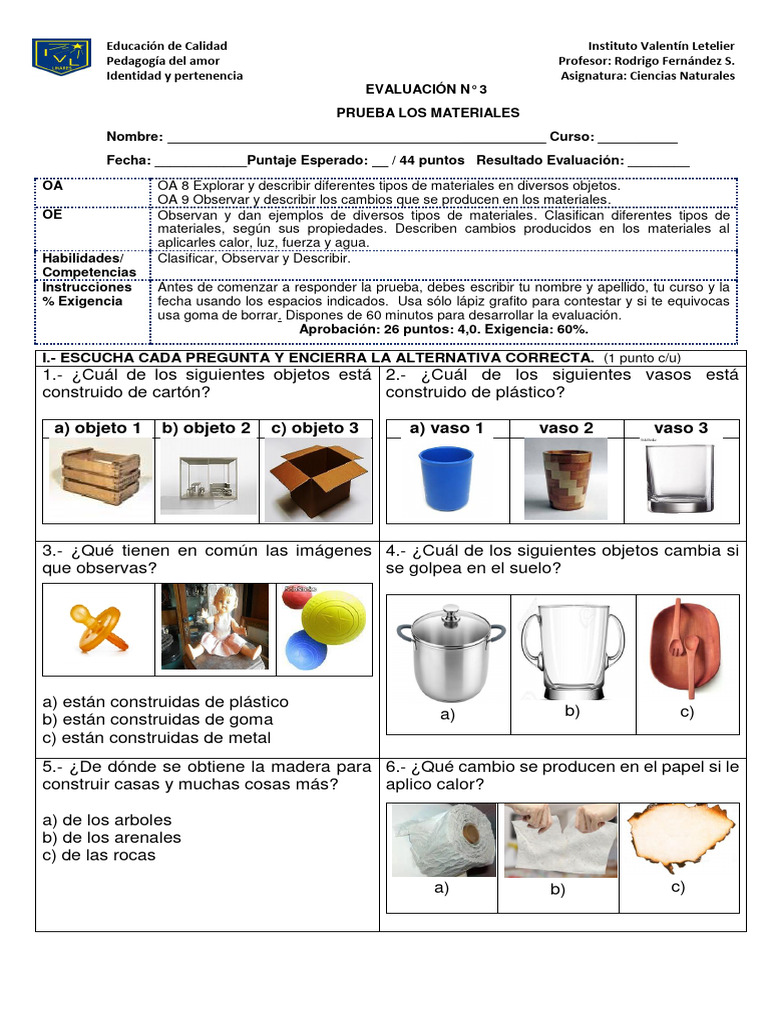 OA OA 8 Explorar y describir diferentes tipos de materiales en diversos objetos.