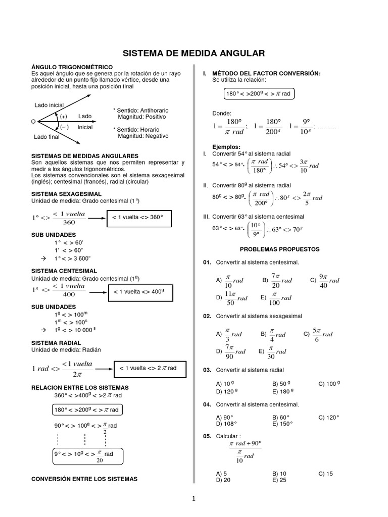 Es aquel ángulo que se genera por la rotación de un rayo I. MÉTODO DEL FACTOR CONVERSIÓN: