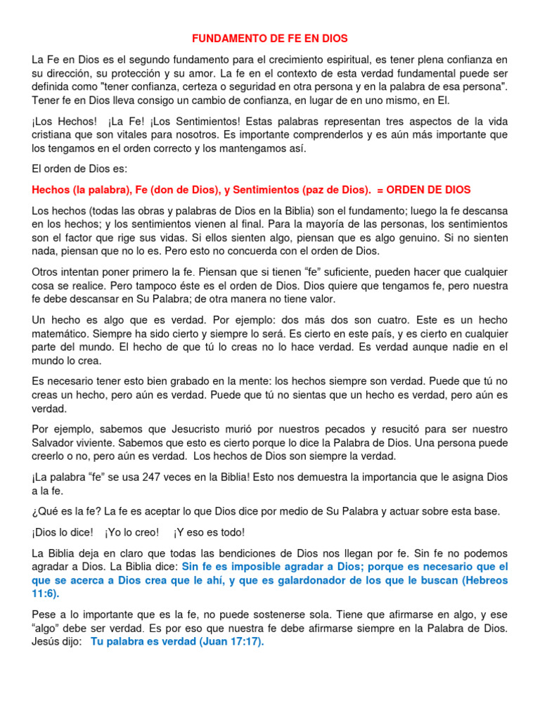 FUNDAMENTO DE FE EN DIOS