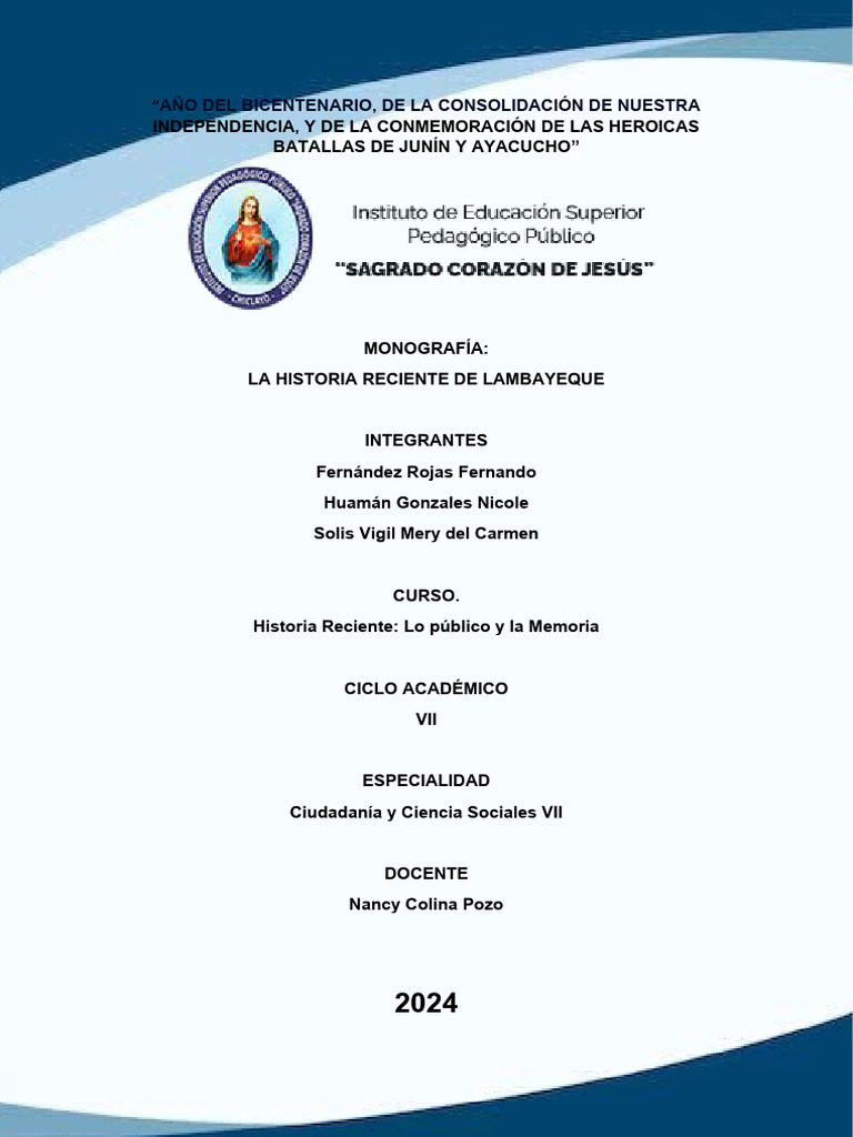 Esta monografía se enfoca en la historia reciente de Lambayeque, abarcando los