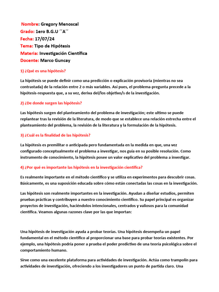 4) ¿Por qué es importante las hipótesis en la investigación científica?