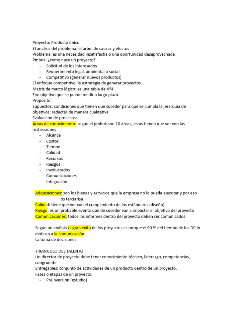 Áreas de conocimiento: según el pmbok son 10 áreas, estas tienen que ver con las
