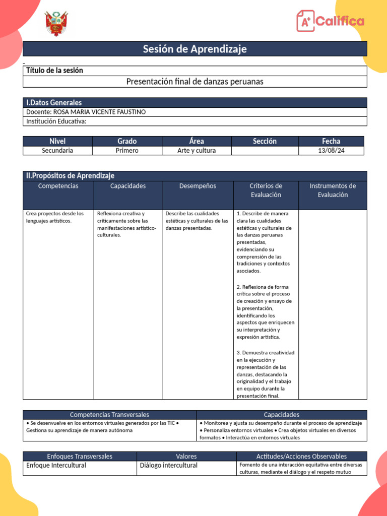 Con estas actividades, buscaremos no solo aprender sobre las danzas peruanas, sino también reflexionar sobre su importancia