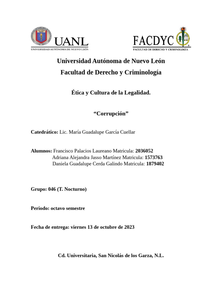 La corrupción, la ética, la cultura de la legalidad y el estado de derecho