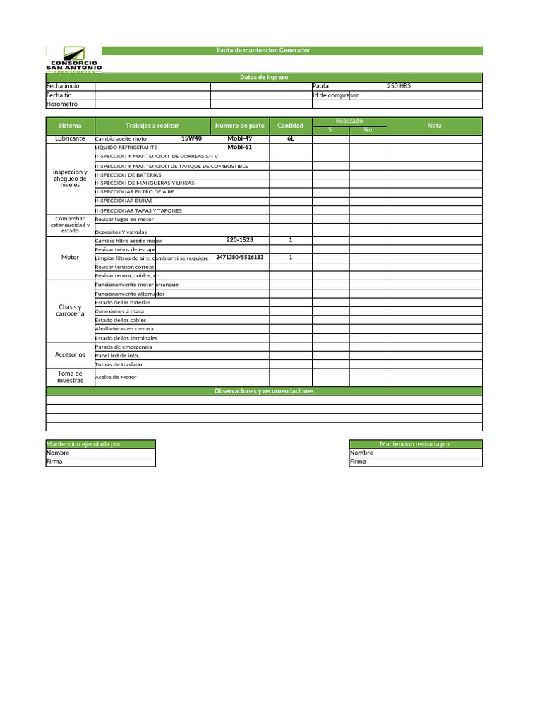 Motor Limpiar filtros de aire, cambiar si se requiere 2471380/5516183 1