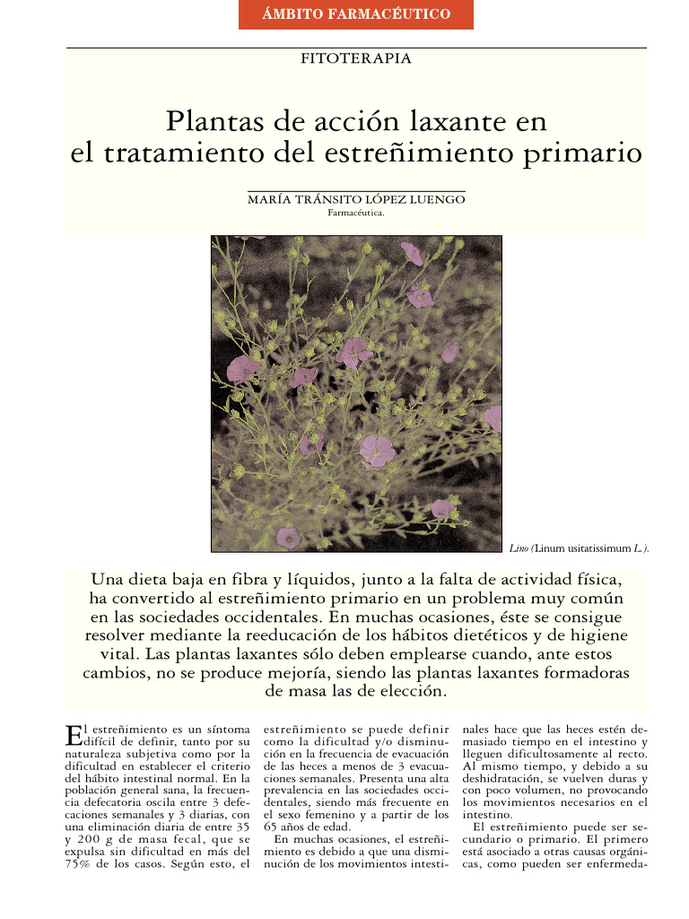(facilita la emisión de heces blandas, Otras plantas de acción laxante estreñimiento. Información Terapéuti-