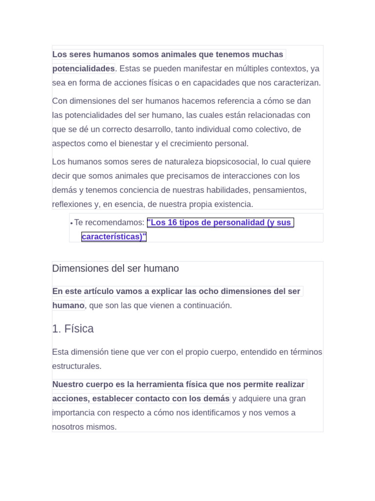 Con dimensiones del ser humanos hacemos referencia a cómo se dan