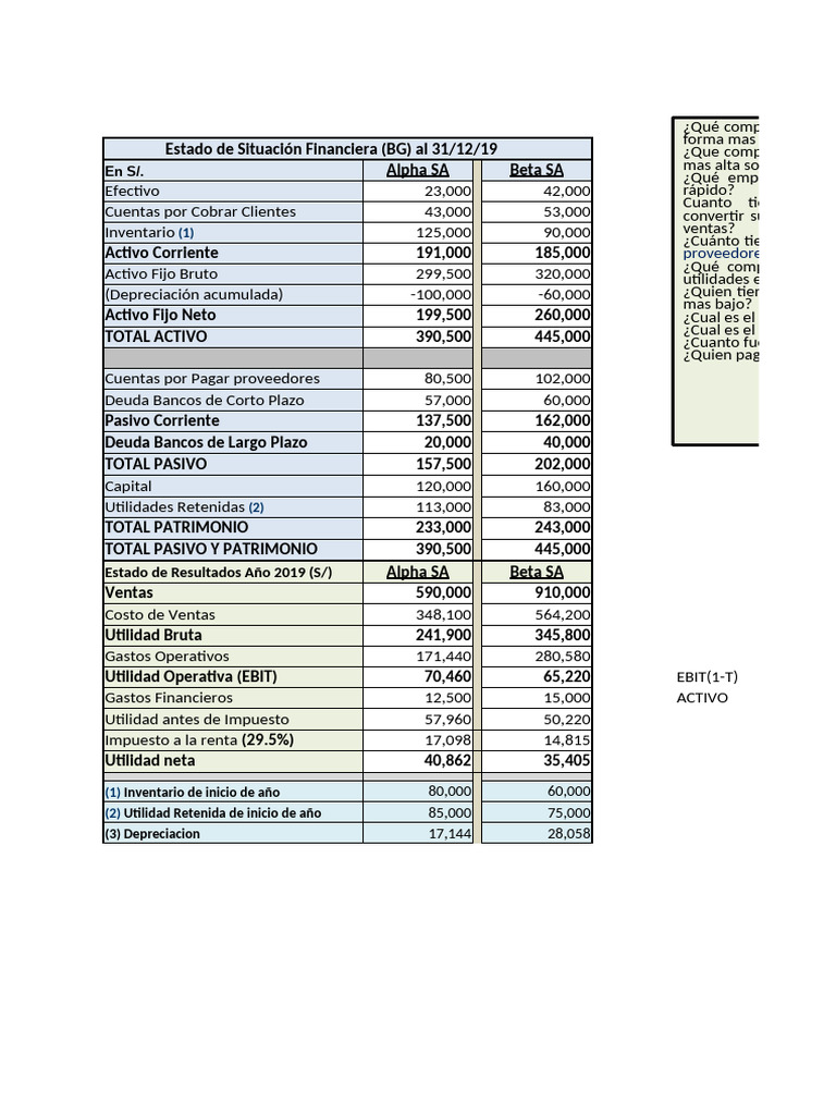 Estado de Resultados Año 2019 (S/) Alpha SA Beta SA