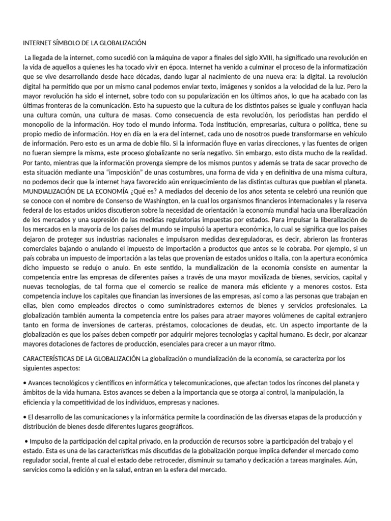 2- ¿Por qué se considera el internet como símbolo de la globalización?