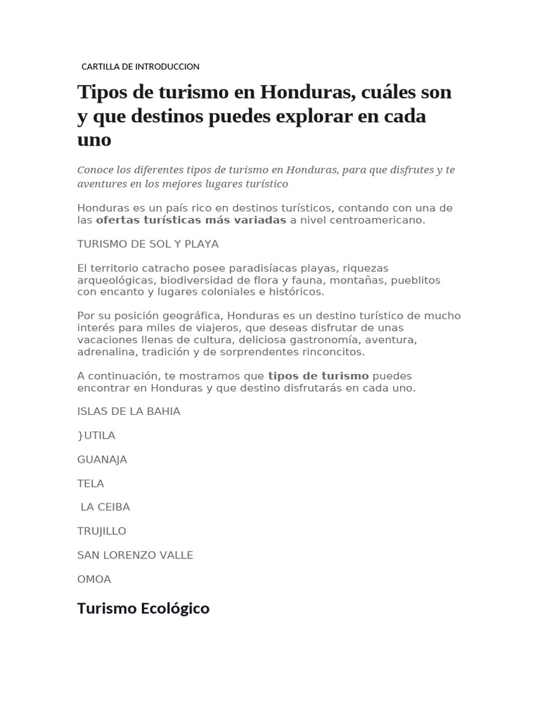 Tipos de turismo en Honduras, cuáles son