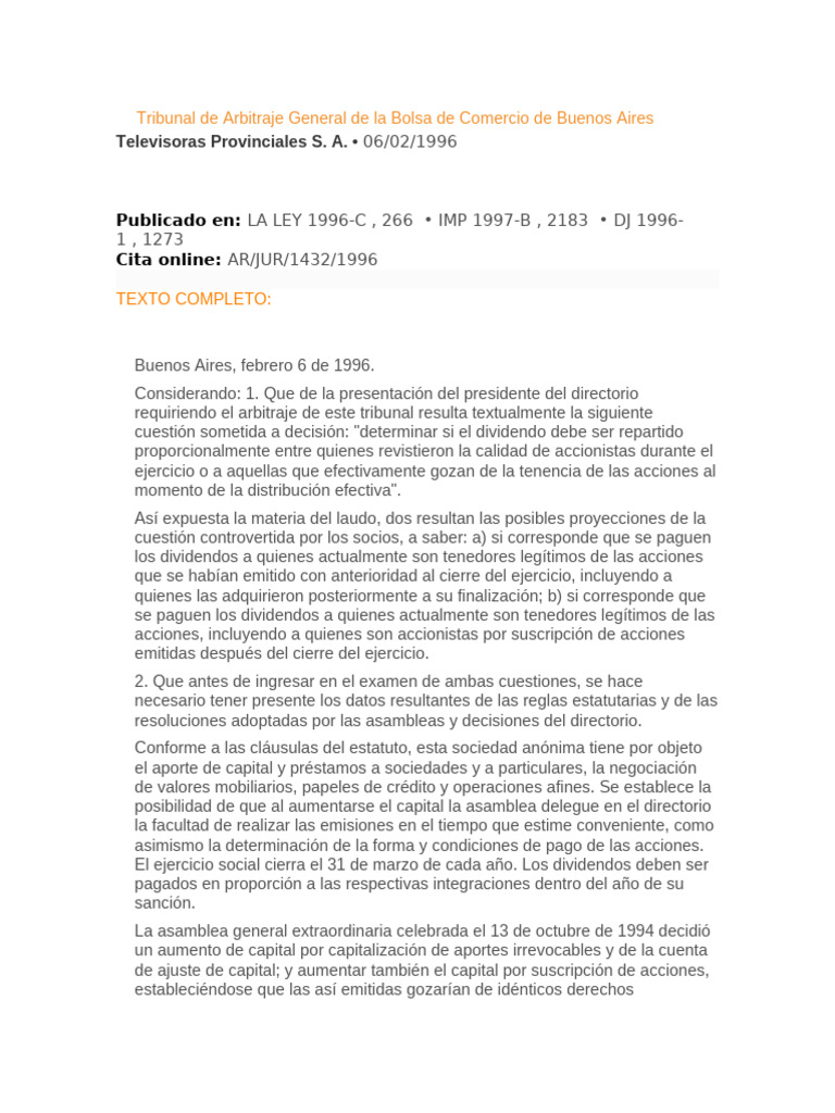 cuestión sometida a decisión: "determinar si el dividendo debe ser repartido