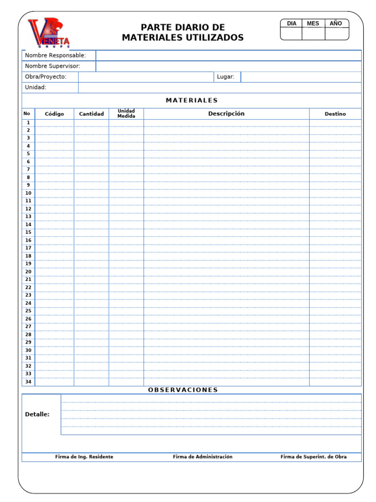 Firma de Ing. Residente Firma de Administración Firma de Superint. de Obra