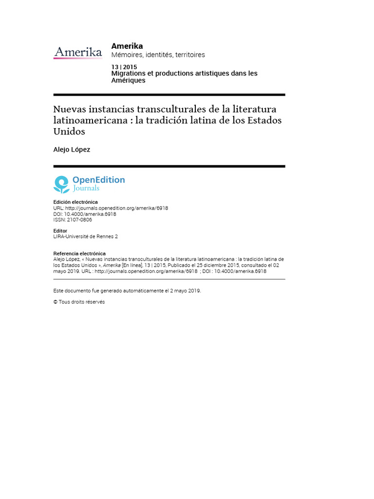 mayo 2019. URL : http://journals.openedition.org/amerika/6918 ; DOI : 10.4000/amerika.6918