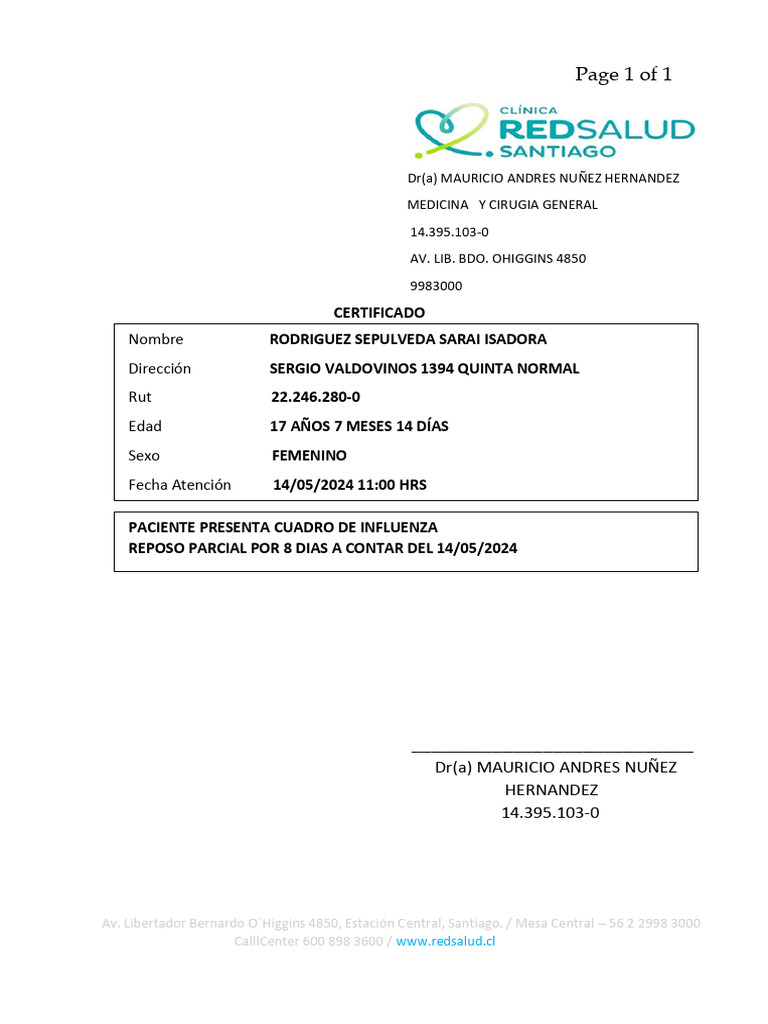 Dr(a) MAURICIO ANDRES NUÑEZ HERNANDEZ