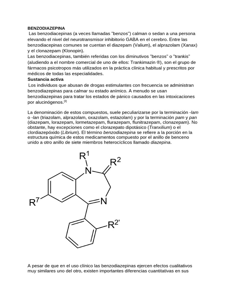 clordiazepóxido (Librium). El término benzodiazepina se refiere a la porción en la
