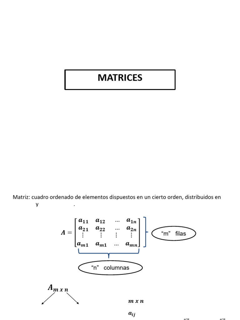 Matriz: cuadro ordenado de elementos dispuestos en un cierto orden, distribuidos en