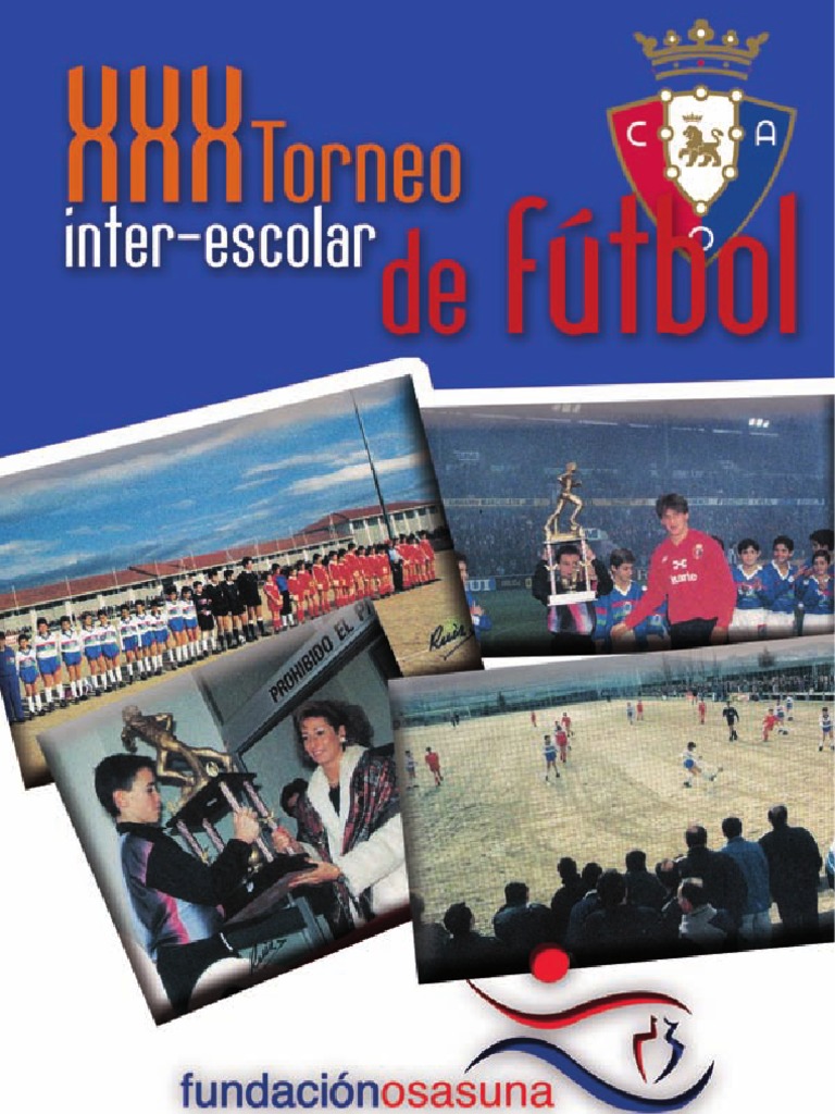 l Torneo Interescolar del Club Atltico Osasuna alcanza en esta edicin una cifra redonda y respetable. Treinta aos desde aquellos balbuceos iniciales que han dado paso a una competicin slida, abierta a toda la Comunidad Foral, y que este ao contar con un nuevo record de participacin. Nada menos que 63 equipos, siete ms que en la ltima edicin. Se alinearn en la lnea de salida el 23 de diciembre en busca de la ansiada ilusin de la final en la maana del da mgico de Reyes. Son sin duda tres dcadas de intenso trabajo por parte de la organizacin y de ilusiones sin lmite por parte de los participantes, chavalitos que se inician en el complicado mundo del ftbol y que suean con parecerse un da a sus dolos de hoy, sin pensar quiz en las dificultades que entraa la empresa. Cierto que son un buen puado los que han conseguido llegar a vestir la camiseta de Osasuna e incluso, desde all, catapultarse a otros equipos. Pero la gran mayora han ido dejando por el camino esos sueos para acabar dedicndose a otras profesiones u oficios. Eso s, guardarn en el bal de sus recuerdos esas maanas fras y desapacibles de Tajonar en las que pusieron todo de su parte en busca de una victoria. Y esos acercamien-