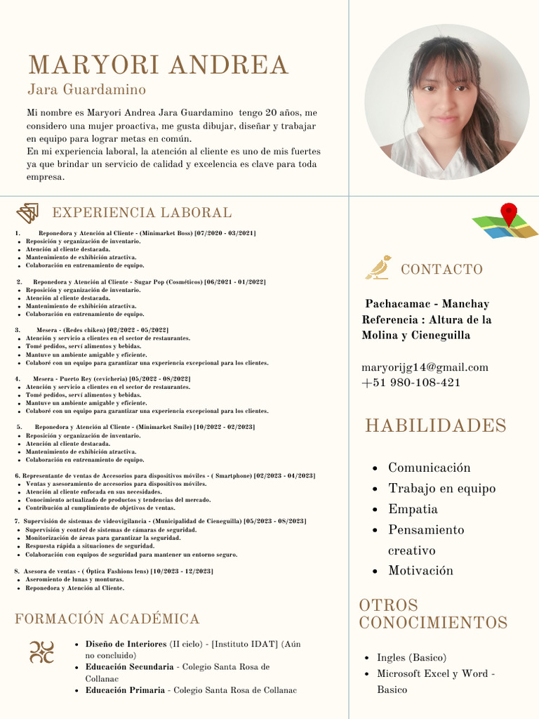 Mi nombre es Maryori Andrea Jara Guardamino tengo 20 años, me