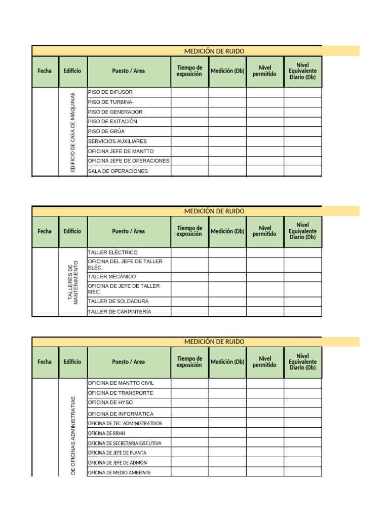 Fecha Edificio Puesto / Area Medición (Db) Equivalente