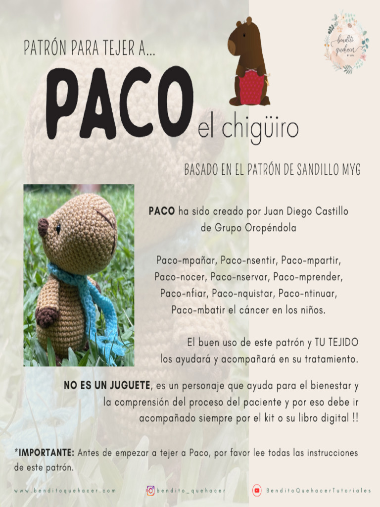 *IMPORTANTE: Antes de empezar a tejer a Paco, por favor lee todas las instrucciones