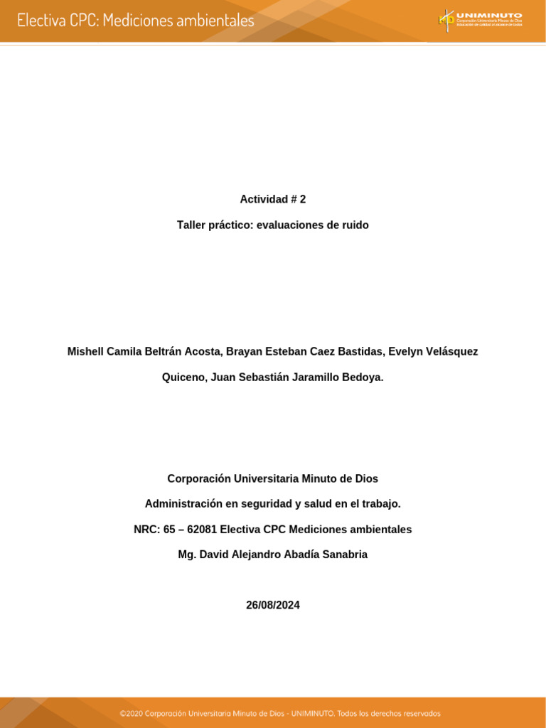 NRC: 65 – 62081 Electiva CPC Mediciones ambientales