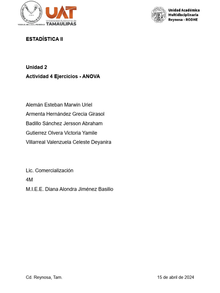 Actividad 4 Ejercicios - ANOVA