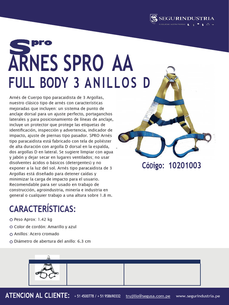 exponer a la luz del sol. Arnés tipo paracaidista de 3 CóDigo: 10201003